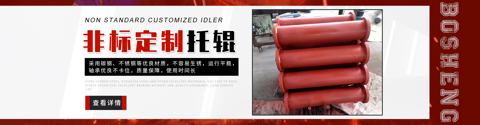 泰安博晟礦山機械有限公司位于山東泰安新泰市汶南鎮(zhèn)陳糧村。緊鄰京滬、京福、萊新高速公路。公路交通極為方便,環(huán)境優(yōu)美。公司主要生產(chǎn):托輥、托輥配件、托輥支架等皮帶輸送機配件。歡迎各界商友前來洽談考察。聯(lián)系電話:13954880316. 泰安博晟礦山機械有限公司采用國際標準設計、制造技術,將托輥的設計和制造提高到了一個更高的水平,生產(chǎn)的托輥具有小的旋轉阻力,長的壽命,小的維修工作量和高的承載能力。鋼管采用托輥專用高頻焊管,管內做去刺處理,圓度控制在特殊的公差范圍之內。軸是按標準公差加工的冷拉鋼制造。軸承座采用進口冷扎鋼板經(jīng)多次工藝沖壓而成。托輥管和軸承座被自動焊接機械手焊接在一起,形成一個具有很高強度的整體構造。托輥軸承采用國內外知名品牌的大游隙深溝球雙密封軸承,使托輥具有理想的靜平衡和動平衡,其旋轉阻力優(yōu)于國標。托輥密封采用綜合國外和國內迷宮式密封的特點進行了專門設計,內充耐高速高溫和超低溫抗氧化鋰基酯,有效防止雜質、水、空氣對托輥內部的侵蝕。 目前我們托輥系列產(chǎn)品有槽形上調心托輥組、槽形托輥、槽形下調心托輥組、承載托輥、緩沖托輥、回程托輥組、螺旋托輥、摩擦上調心托輥組、平行緩沖托輥組、平行上調心托輥、礦用托輥、煤礦專用托輥、梳型托輥、樹脂托輥、陶瓷托輥、橡膠托輥、錐形托輥、立輥等。規(guī)格:直徑50-219mm;長度190-2600mm。 泰安博晟礦山機械有限公司竭誠愿與廣大客戶合作,共同發(fā)展開發(fā)新技術新項目。泰安博晟礦山機械有限公司秉承